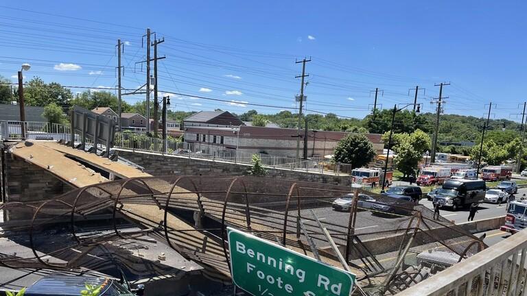 وقال المسؤولون في تغريدة عبر "تويتر" إنهم استجابوا لتقارير انهيار الجسر بالقرب من تقاطع شارع كينيلورث وشارع بولك، حوالي الساعة 12 ظهرا بتوقيت واشنطن.