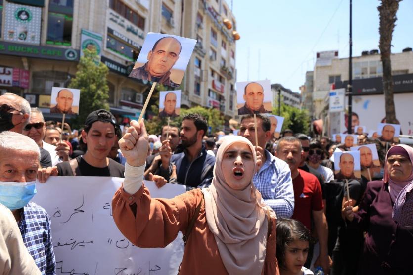 تظاهر عشرات الفلسطينيين، اليوم الخميس، وسط مدينة رام الله وسط الضفة الغربية، رفضا وتنديدا بوفاة الناشط السياسي نزار بنات، أثناء اعتقاله من قبل الأجهزة الأمنية في مدينة الخليل الليلة الماضية.