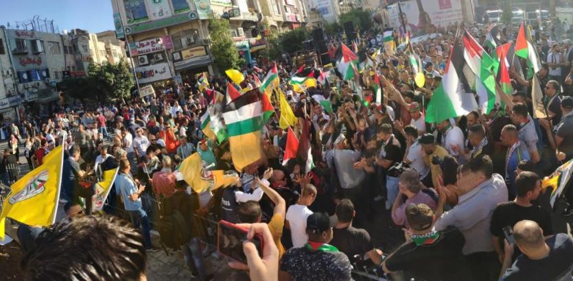 من جهة أخرى، رفع المشاركين في مسيرة منددة بمقتل الناشد نزار بنات، صورا له، مطالبين بمحاسبة المسؤولين ومرددين شعارات لضمان حرية الرأي والتعبير.