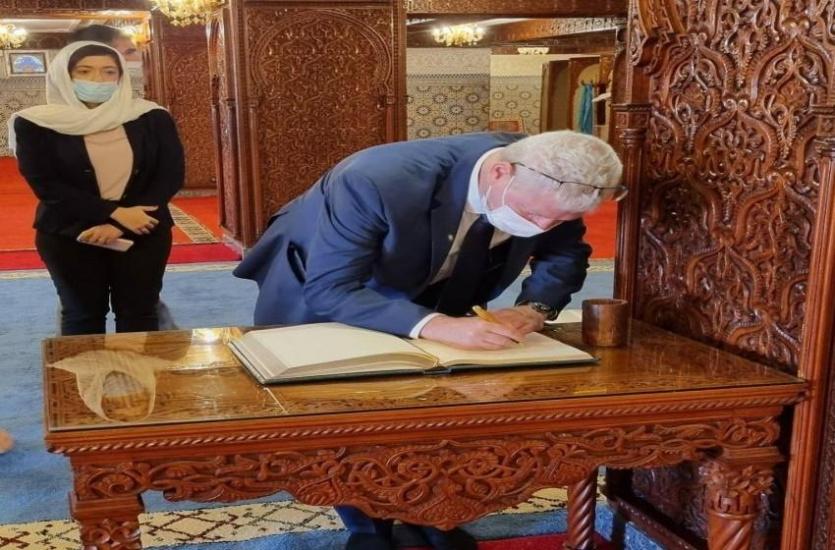 وكتب مدير عام الخارجية الإسرائيلية، ألون أوشبيز، باللغة العربية في الدفتر الذهبي للضريح: "خالص شكرنا للملكين محمد الخامس والحسن الثاني رحمهما الله وجلالة الملك محمد السادس نصره الله على صداقتهم مع الشعب اليهودي وعلى بناء العلاقات السلمية مع إسرائيل”.