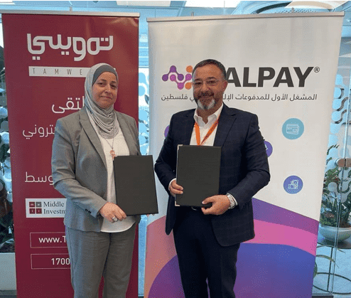 وقّعت شركة PalPay لخدمات الدفع الإلكتروني يوم الأحد، اتفاقية تعاون مع شركة مبادرة الشرق الاوسط للاستثمار المالكة لموقع Tamweeli.ps للاستفادة من خدمات تطبيق منظومة محفظة الدفع الكترونية المتكاملة " PalPayمحفظتي"، وبموجبها ستُمكّن جميع مشتركي المحفظة من التقدم لطلب افضل عروض التمويل من خلال موقع Tamweeli وتسهيل تسديد اقساطهم الشهرية.