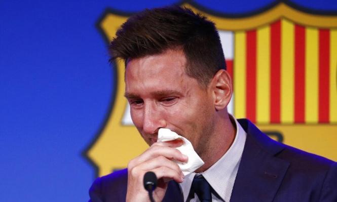 خلال مؤتمر صحفي.. ميسي يعلن رحيله عن برشلونة بالدموع