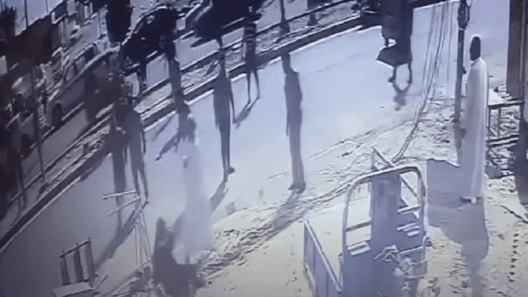 وظهر في المشهد، رجل يرتدي جلبابا أبيض يقترب من آخر ويطلق النار عليه 3 مرات، ويهدد شخصا اقترب في تلك اللحظة دافعا إياه إلى الفرار، وبعد لحظات من وقوفه أمام الضحية، غادر القاتل من دون عجلة مكان الجريمة.