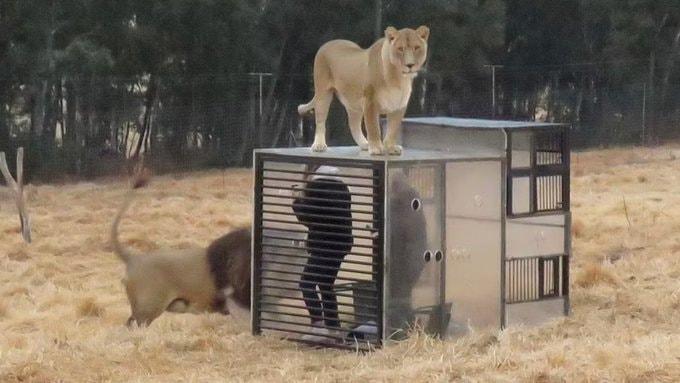 وتضع محمية الأسود "غلين غاريف Glen Garriff" في جنوب أفريقيا، زوارها داخل قفص، لرؤية وتصوير الأسود الأفريقية المذهلة بطريقة "آمنة وإنسانية".