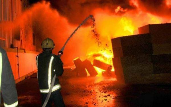 شاهد: الدفاع المدني يسيّطر على حريق هائل في مركز صيانة بجنين
