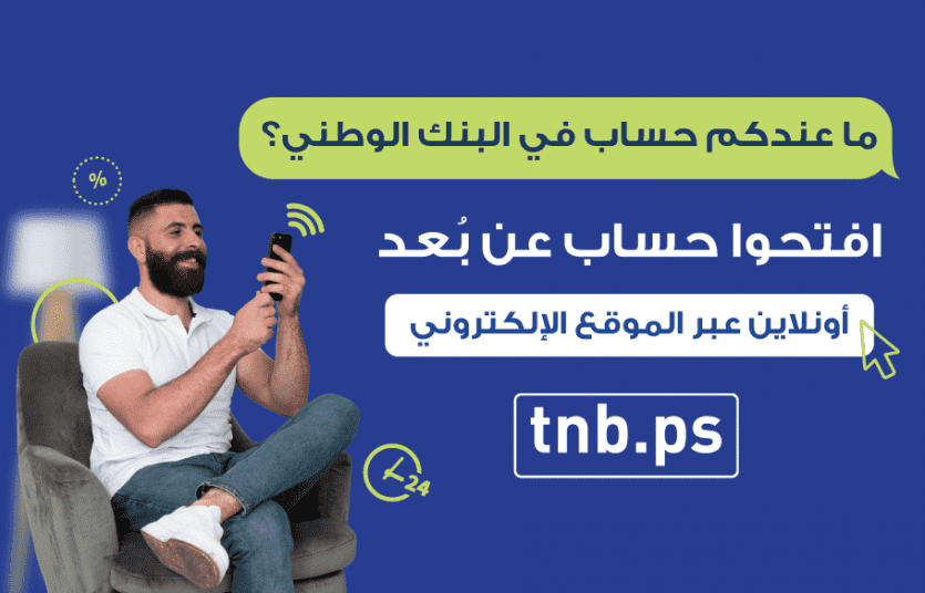 والجدير ذكره أنه للاستفادة من الخدمة، على العملاء الجدد ممن استغلوا الخدمة لفتح حسابات مصرفية تفعيل هذه الحسابات عن طريق زيارة فروع البنك لتفعيل الحساب خلال 14 يوما، الى حين اعتماد التواقيع الالكترونية رسميا. ويستطيع الراغبون بفتح أي من هذه الحسابات الدخول الى الرابط www.onboarding.tnb.ps أو عبر الموقع الالكتروني الرسمي للبنك www.tnb.ps ، واتباع التعليمات لإتمام العملية وفتح الحساب بنجاح.