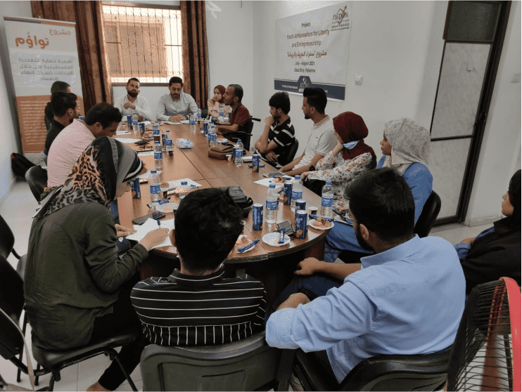 ونفذت الجلسة بمشاركة الناشط الشبابي الأستاذ حاتم دياب والاستاذ علي عبد الباقي مسؤول العلاقات الوطنية باتحاد الشباب الديمقراطي الفلسطيني بقطاع غزة، والناشطة الحقوقية والباحثة السياسية الأستاذة مريم الحج احمد، وبمشاركة 22 شاباً وشابة من الناشطين السياسيين والمجتمعيين في قطاع غزة.