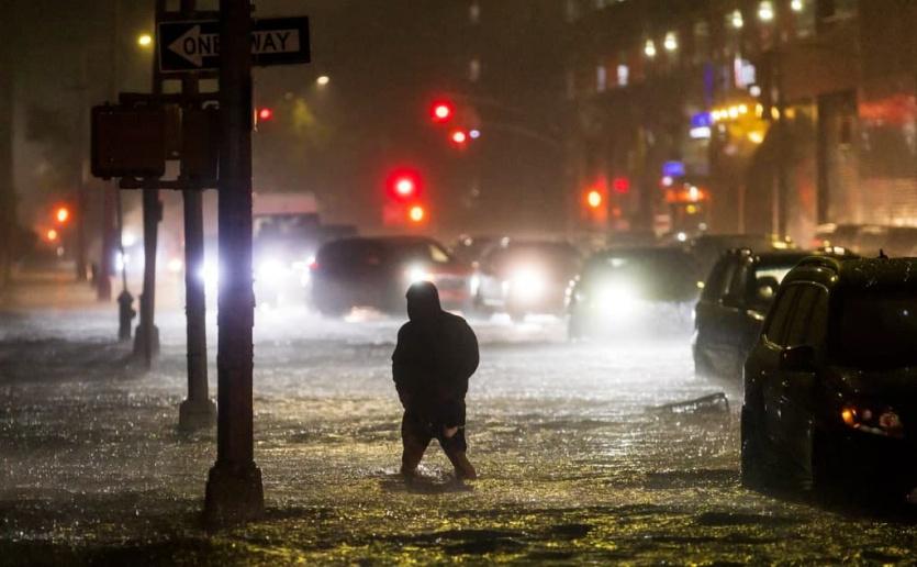 وهطلت أمطار غزيرة على العاصمة الاقتصادية والثقافية للولايات المتحدة. ونشرت إدارة الطقس مقاطع فيديو لشوارع غارقة في أحياء بروكلين وكوينز مما جعل حركة السير مستحيلة.