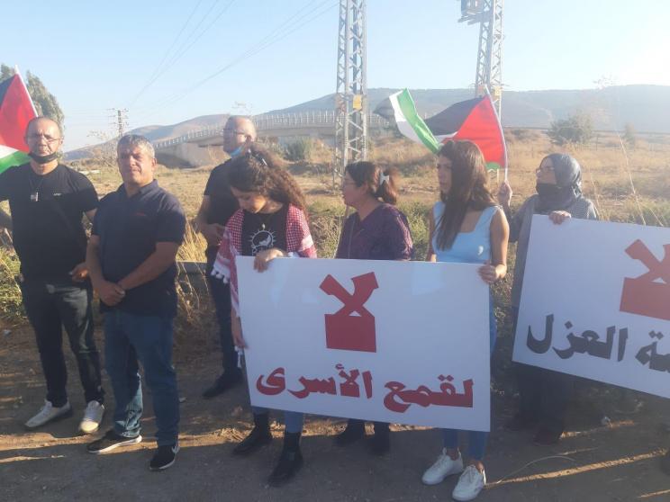 وتظاهر العشرات أمام سجن "جلبوع" بدعوة من القوى الوطنية ونادي الأسير، ورفعوا لافتات منددة بسياسة القمع والتنكيل ضد الأسرى، كتب على بعضها "لا لسياسة العزل"، "لا لقمع الأسرى"، "لا للعقوبات الجماعية"، "لا لسياسة الانتقام".