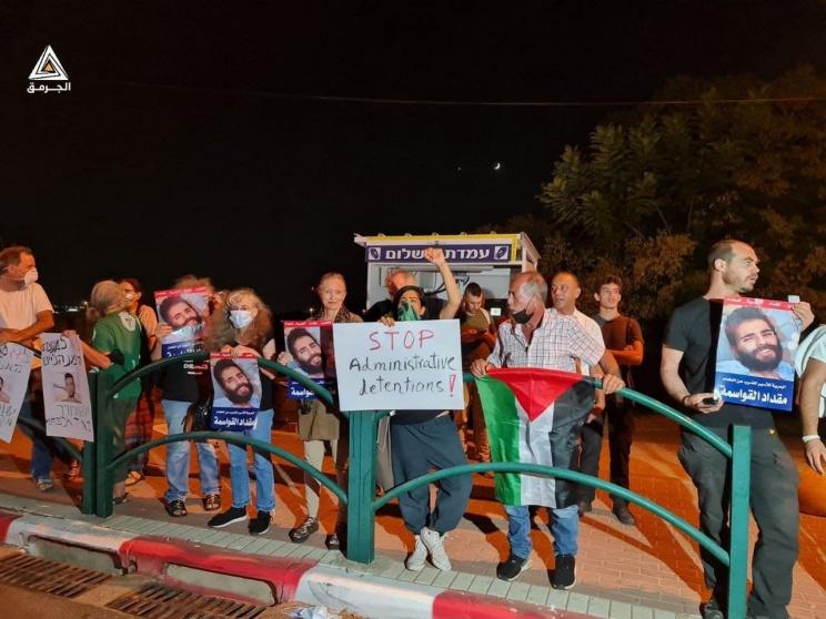 نظم عشرات الشبان، مساء اليوم السبت، وقفة دعم وإسناد للأسير مقداد القواسمة المضرب عن الطعام لليوم الـ80 على التوالي، أمام مستشفى "كابلان"، الذي يحتجز فيه بالداخل.