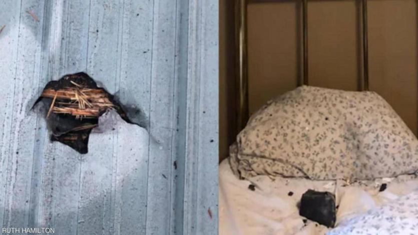 وحسب ما ذكر موقع "tvanouvelles" الكندي، فإن الحادثة وقعت مساء الاثنين 4 أكتوبر، حين كانت روث هاميلتون نائمة في منزلها، قبل أن تتفاجأ بشيء ضخم يخترق السقف ويسقط مباشرة على وسادتها، على بعد سنتيمترات من رأسها.