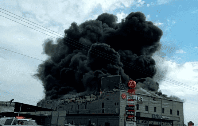 اندلع حريق هائل في المجمع التجاري "Z سنتر" في مدينة قلنسوة، ظهر اليوم السبت.