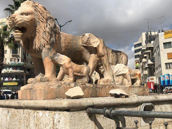 ألقت الشرطة الفلسطينية، اليوم الأحد، القبض على شخص بعد إقدامه على تحطيم أجواء من تماثيل الأسود الموجودة على دوار المنارة وسط مدينة رام الله بالضفة الغربية.