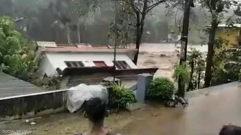 رصد مقطع فيديو لحظة انهيار منزل بأكمله في ولاية كيرلا الهندية، بعد أن تسببت الأمطار الغزيرة في حدوث انهيارات أرضية.