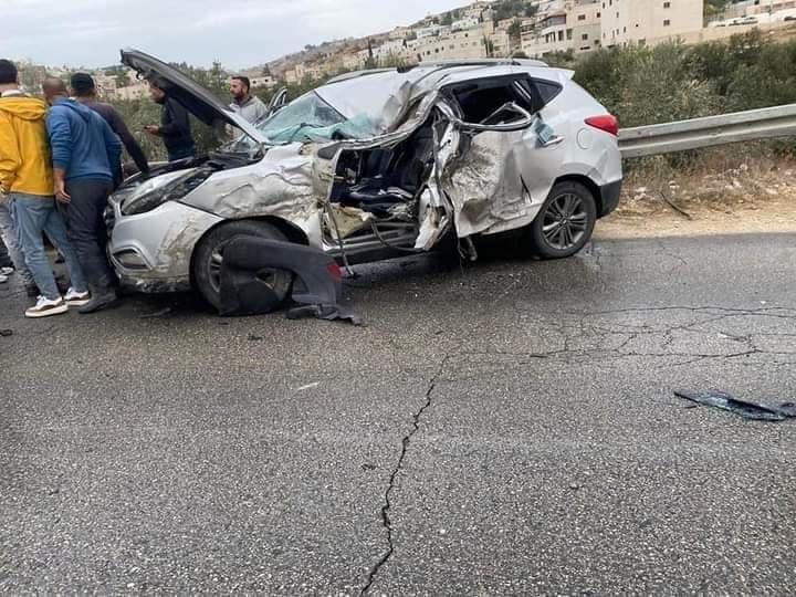 إصابات جراء حادث تصادم بين مركبة وشاحنة شرق بيت لحم