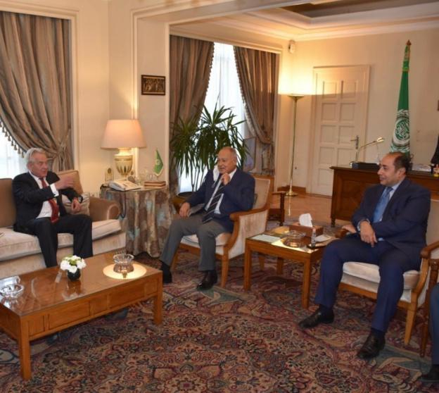 جاء ذلك خلال استقباله، مبعوث الأمم المتحدة لعملية السلام تور وينسلاند، وذلك في مقر الأمانة العامة لجامعة الدول العربية، حيث بحثا التطورات الأخيرة في الأراضي المحتلة، ومجمل الأوضاع في فلسطين وإسرائيل، ومخاطر غياب مسار التسوية.