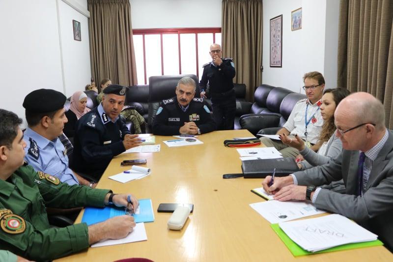 وذكرت ادارة العلاقات العامة واالاعلام في الشرطة بان السيد اللواء الحلو اجتمع بالعميدكارترايت قائد فريق الدعم البريطاني، والمستشار إيان سمايلز وأعضاء الفريق العميد ياسر أبو حنانة والعقيد وليد حلس من الشرطة وبحضور المقدم هاني حجازي والمقدم داود أبو قرع والمقدم محمد الريماوي من الأجهزة الأمنية.