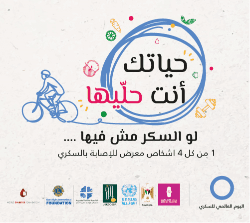 أطلق بنك فلسطين ومؤسسة جذور للإنماء الصحي والاجتماعي للعام الثالث على التوالي، حملة إعلامية في مختلف وسائل الإعلام للوقاية من مرض السكري في فلسطين، تحت شعار "حياتك انت حليها...لو السكر مش فيها".