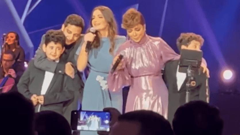 فيديو: أصالة تغني مع أبنائها الأربعة على المسرح