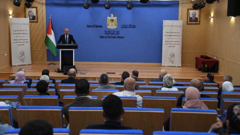 وقال رئيس الوزراء: "أقف أمامكم اليوم لنكرم الذين استحقوا هذا التكريم، وكنت آمل أن يكون هذا المشهد اكتمل بأن يكون التكريم في القدس المحررة، ويكون انتهى هذا الانقسام لكي يكون بيننا ومعنا أخوات وإخوة من قطاع غزة وأن يكون المشهد مكتملا بعودة لاجئينا من الشتات، ليكتمل الوطن بجغرافيته وديمغرافيته، ويكون هذا الاحتلال قد انقشع، وتكون دولتنا الفلسطينية المستقلة قد نالت استقلالها وتواصلها الجغرافي، وقابليتها للحياة بعيدا عن الاحتلال ومنغصاته".