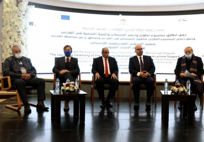 أطلق المجلس الفلسطيني للإسكان، ووزارة شؤون القدس، ومكتب ممثل الاتحاد الأوروبي، اليوم الثلاثاء، مشروع تطوير ودعم الإسكان والبنية التحتية في القدس، بتمويل من الاتحاد الأوروبي.