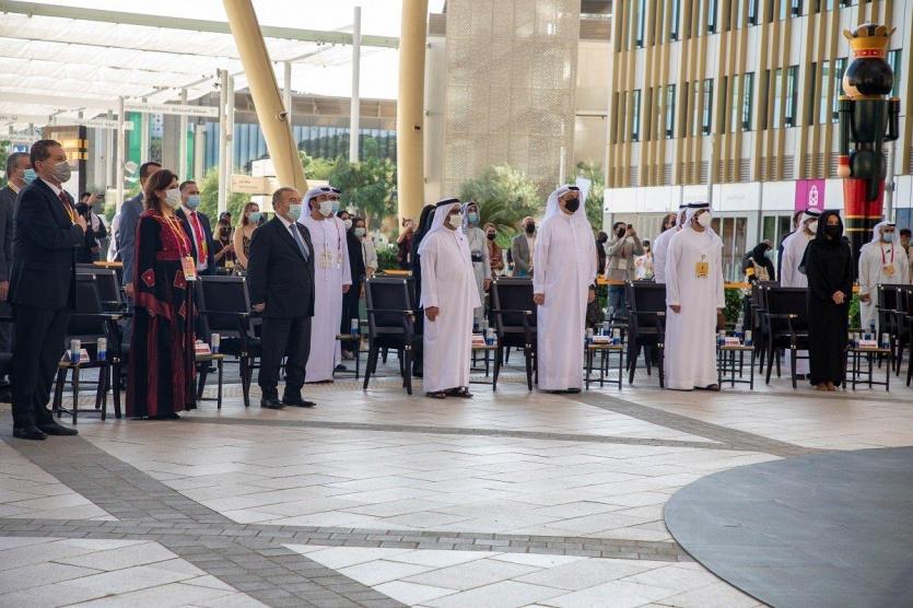 وتخلل الحفل الذي جرى بحضور ممثلين دوليين، رفع علم دولة الإمارات العربية المتحدة المستضيفة لإكسبو 2020 الدولي، وعلم دولة فلسطين، ومن ثم عزف النشيد الوطني لكلا البلدين، إضافة إلى جولة في جناحي فلسطين والإمارات.