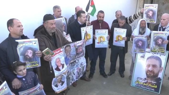 ورفع المشاركون في الوقفة التي نظمتها عائلة الأسير بالتعاون مع هيئة شؤون الأسرى والمحررين، ونادي الأسير، صور الأسير أبو هواش الذي يواجه وضعا صحيا حرجا، وشعارات منددة بالاحتلال وإجراءاته، محملين إياه المسؤولية الكاملة عن حياة أبو هواش.