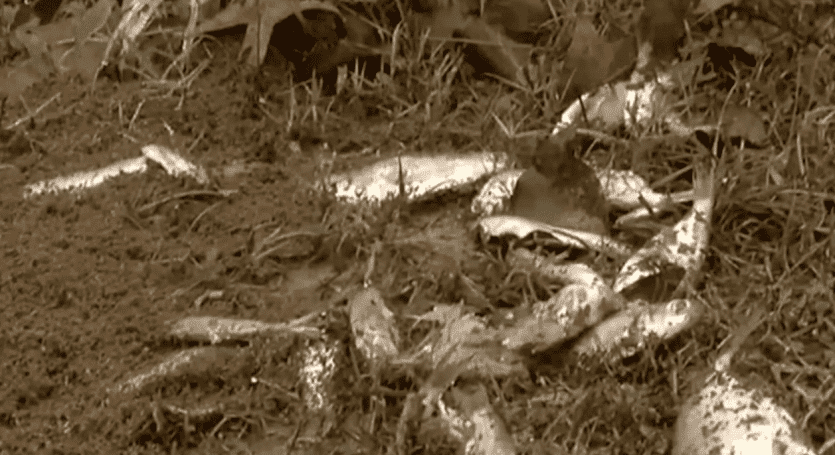 ولاحظ السكان أن الأسماك "فتحت رؤوسها" مما يشير إلى أنهم سقطوا من مكان مرتفع، وأشار بريغهام بأنهم ارتطموا بالخرسانة عندما سقطوا.