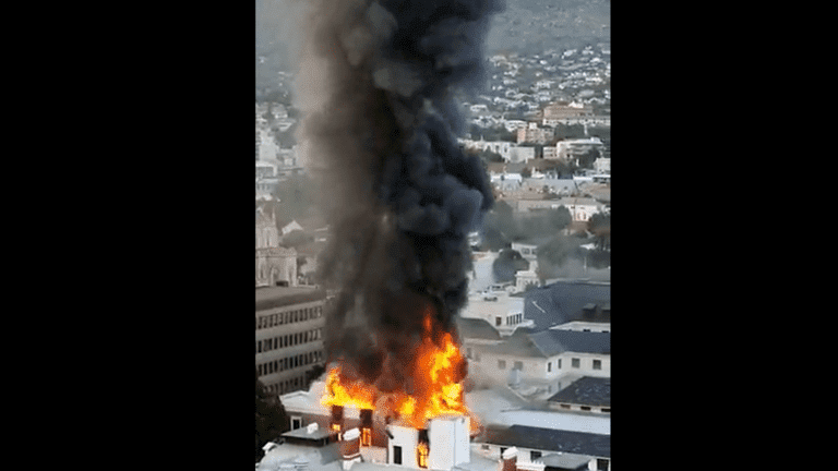 صور: حريق ضخم في مقر برلمان جنوب إفريقيا