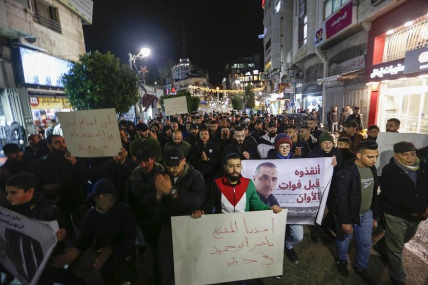 ورفع المشاركون في الوقفة التي نظمت وسط مدينة رام الله، صورا للأسير، ورددوا الهتافات والشعارات التي تدعو إلى إنقاذ حياته، قبل أن تنطلق مسيرة من دوار المنارة، لتجوب شوارع المدينة.