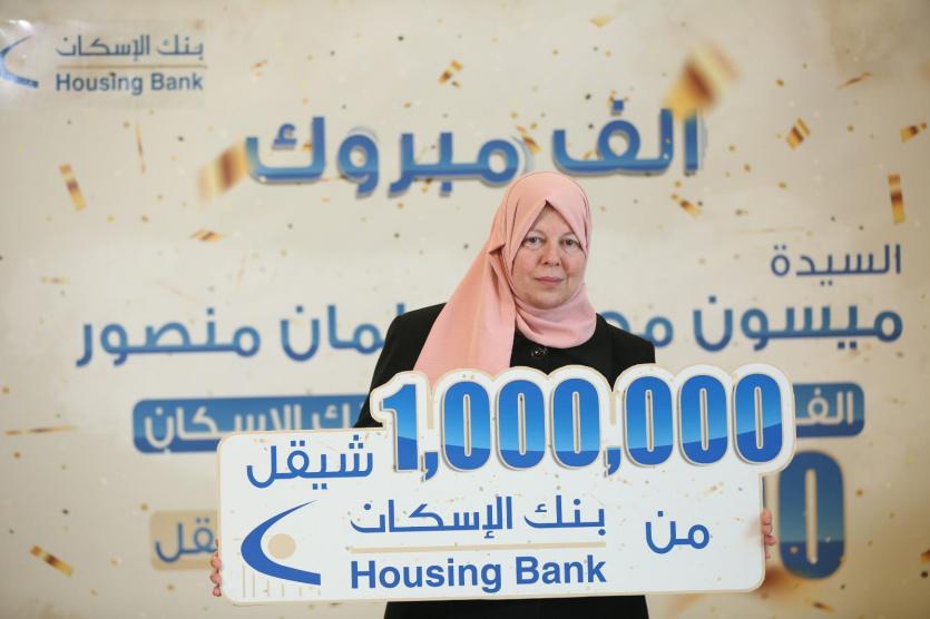 أعلن بنك الإسكان في فلسطين عن نتائج السحب على الجائزة الكبرى السنوية لحسابات التوفير لشهر كانون أول 2021 والتي تبلغ قيمتها مليون شيقل وفازت بها السيدة " ميسون محمد سلمان منصور" صاحبة حساب التوفير لدى بنك الإسكان / فرع رام الله، وهي ربة منزل من قرية دير غسانة غرب رام الله، كما فاز أيضا 10 فائزين بجوائز ترضية قيمة كل جائزة 10,000 شيقل.
