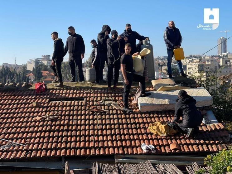وانتشرت وحدات معززة من شرطة الاحتلال بمحيط منزل العائلة، كما تمركز عناصر من الوحدات الخاصة فوق سطح المنزل الذي اقتحمته وحدات خاصة بغية إخلاء أفراده، فيما تحصن رب العائلة مع أسطوانة للغاز فوق سطح المنزل.
