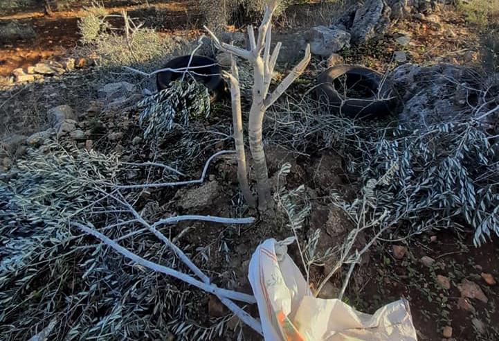 مستوطنون يقتلعون ويحطمون 90 شجرة زيتون في سلفيت
