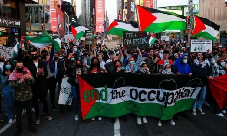 وطالبت التظاهرات التي نظمها أنصار الحق الفلسطيني، الادارة الاميركية بالضغط على حكومة اسرائيل لوقف جرائم التطهير العرقي في النقب وحي الشيخ جراح وفي مدينة الخليل.