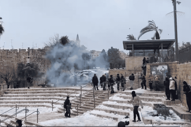 كما هاجمت بالرصاص المعدني المغلف بالمطاط وقنابل الصوت المواطنين في منطقة باب العمود بالبلدة القديمة من مدينة القدس المحتلة، أثناء لهوهم بالثلج.