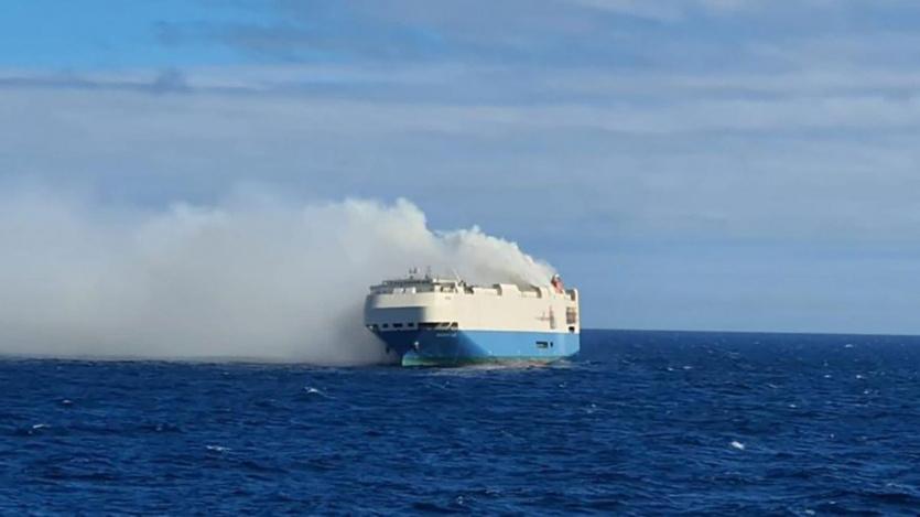 واشتعلت النيران في الباخرة التي كانت تحمل سيارات من طراز بورش وفولكسفاغن قرب جزر الأزور وسط المحيط الأطلسي.