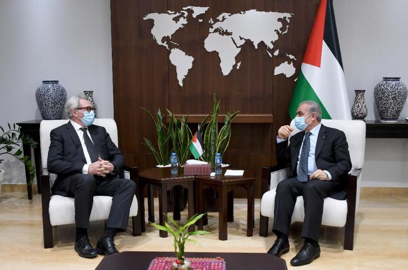 بحث رئيس الوزراء محمد اشتية مع المبعوث النرويجي الخاص لعملية السلام جون هينسين، اليوم الثلاثاء في مكتبه برام الله، تحضيرات اجتماع المانحين القادم، بحضور ممثلة النرويج لدى فلسطين تورن فيستي.