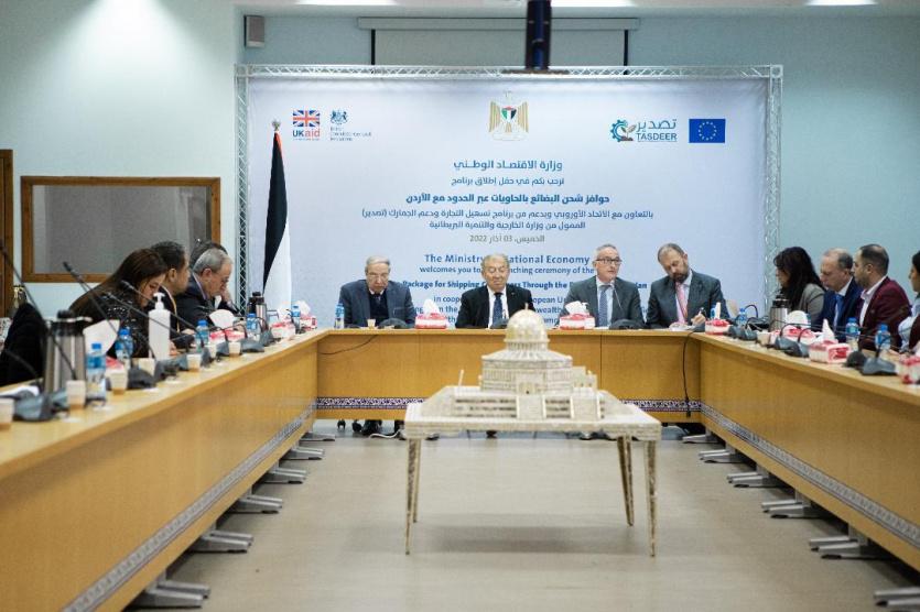 كما عرض مدير دائرة الاقتصاد والجمارك في الاتحاد الأوروبي أوداردو كومو، نبذة عن المبادرة التجريبية لزيادة حجم التجارة الفلسطينية عبر الحدود مع الأردن من خلال شحن البضائع في حاويات.
