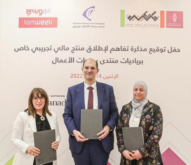 وقع منتدى سيدات الأعمال، بالشراكة مع بنك فلسطين، وشركة مبادرة الشرق الأوسط للاستثمار، مذكرة تفاهم لإطلاق منتج مالي خاص برياديات منتدى سيدات الأعمال، بهدف تشجيع النساء وتعزيز وصولهن إلى مصادر التمويل المستدام. وتأتي هذه الاتفاقية تأتي ضمن جهود المنتدى لتعزيز البيئة الممكنة للنساء من خلال مشروع "الرياديون من النساء والشباب يقودون التغيير - أُبادر"، الذي تنفذه منظمة كير العالمية (الضفة الغربية/غزة) ومنتدى سيدات الأعمال بالتعاون مع وزارة الاقتصاد الوطني؛ وبالشراكة مع حكومة كندا.