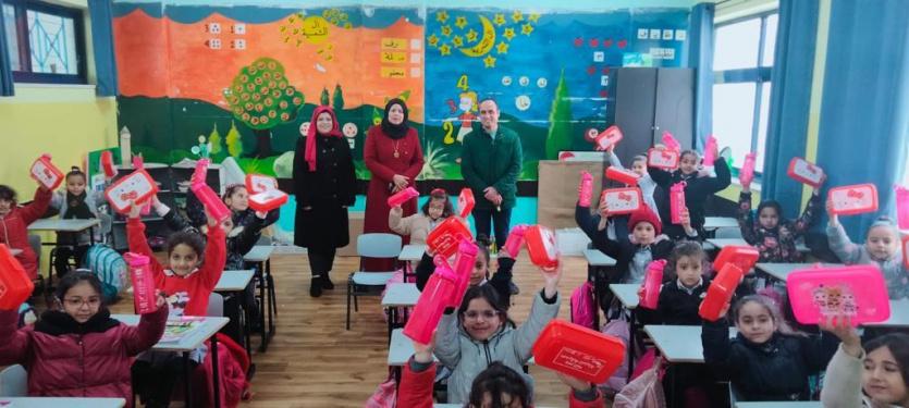 وتضمنت الزيارات سلسلة نشاطاتٍ مع الطلبة، إلى جانب توزيع مطرات المياه وصناديق حفظ الطعام على الطلبة المشاركين في المشروع، وذلك لنشر التوعية فيما يخص التقليل من إنتاج النفايات الصلبة وتبيان ضررها على البيئة.