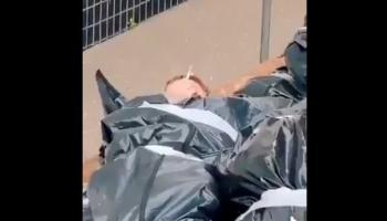 وأظهر المقطع الذي تبلغ مدته 12 ثانية، وأظهر رجلاً داخل كيس أسود وذراعه في الخارج ممسكة بسيجارة مشتعلة يتصاعد منها الدخان، فيما بدا أن اثنين آخرين يرتبان أكياس الجثث خلفه في بناء أبيض وأمامهم سيارة.