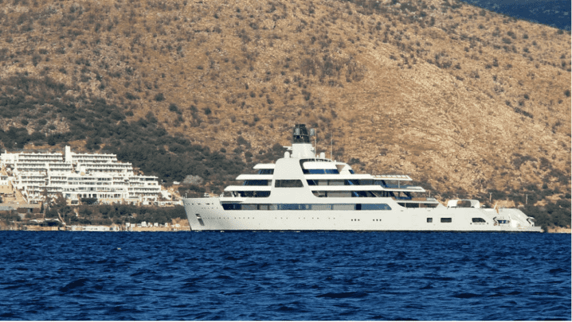 والتقطت مشاهد لليخت “سولاريس” البالغ طوله 140 مترا ويرفع علم برمودا في منتجع بودروم بجنوب غرب تركيا الإثنين، بعد أكثر من أسبوع على رصده في مرفأ في مونتينيغرو، غير المنضوية في الاتحاد الأوروبي.