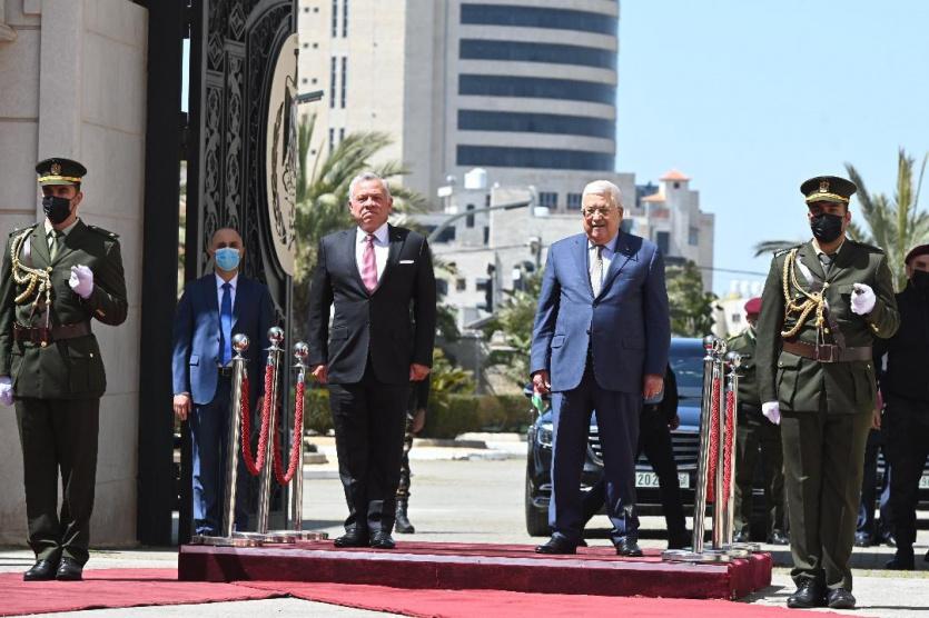 واستعرض الرئيس والعاهل الأردني، حرس الشرف الذي اصطف لتحيتهما، فيما عُزف السلام الوطني الفلسطيني والملكي الأردني.