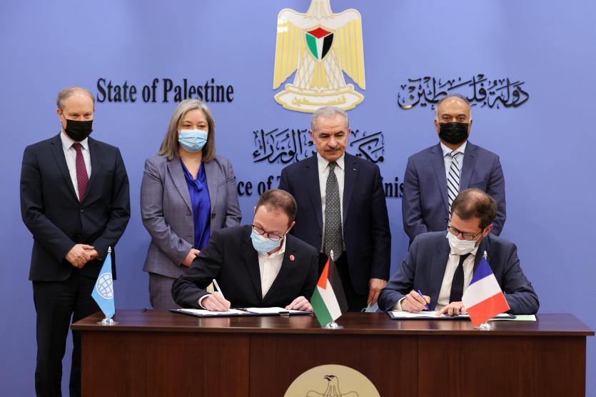 وقعت في مكتب رئيس الوزراء بمدينة رام الله، اليوم الثلاثاء، عدة اتفاقيات دعم من الحكومة الفرنسية لفلسطين، عبر الوكالة الفرنسية للتنمية بقيمة 29 مليون يورو، برعاية وحضور رئيس الوزراء محمد اشتية.