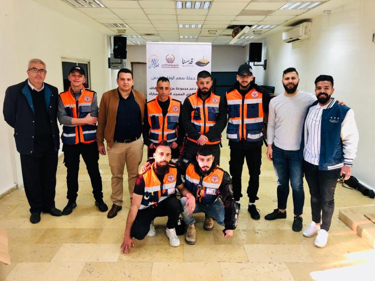 وأضاف "نشكر كل المسعفين والمسعفات والمتطوعين والمتطوعات هؤلاء الجنود المجهولين في الميدان في رحاب المسجد الأقصى المبارك وفي كافة وازقة وشوارع القدس نقدم هذا الدعم البسيط كأقل واجب تجاه جهودهم التي يبذلونها في اسعاف المصابين"