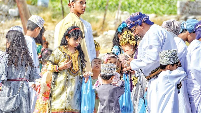 عيد الفطر في سلطنة عمان يكون لديه الأجواء المميزة والأكلات المفضلة لدى العائلات حيث تصلي العائلات صلاة العيد ثم تزور بعضها والأرحام قبل الذهاب للتنزه.