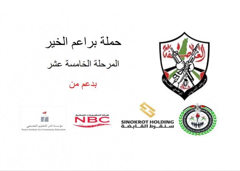 أطلقت حملة براعم الخير مرحلتها الخامسة عشر، لدعم أطفال فلسطين؛ من خلال تقديم ألف طرد ترفيهي تعليمي لأطفال مخيم جنين والقدس، في إطار الدعم النفسي والمعنوي لهم في ظل الهجمة الشرسة التي تشنها قوات الاحتلال الإسرائيلي على كافة أبناء شعبنا، والتي طالت وبشدة في الآونة الأخيرة جنين ومخيمها والقدس.
