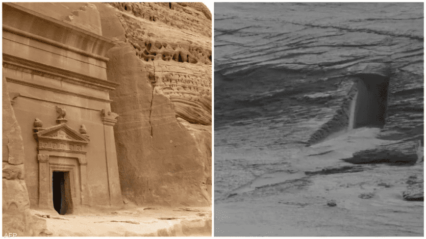 مركبة ناسا (كوريوستي) الموجودة على المريخ تلتقط صورة وصفت بالغامضة لباب منحوت في جبل صخري وكأنه يقود لمبنى داخل الجبل وهي تشبه لحد كبير الأبواب في آثار مدائن صالح في السعودية والبتراء في الأردن.