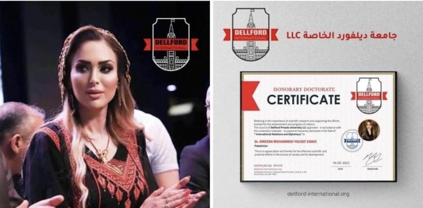 جامعة ديلفورد الأمريكية تمنح الدكتورة عويس شهادة دكتورة فخرية