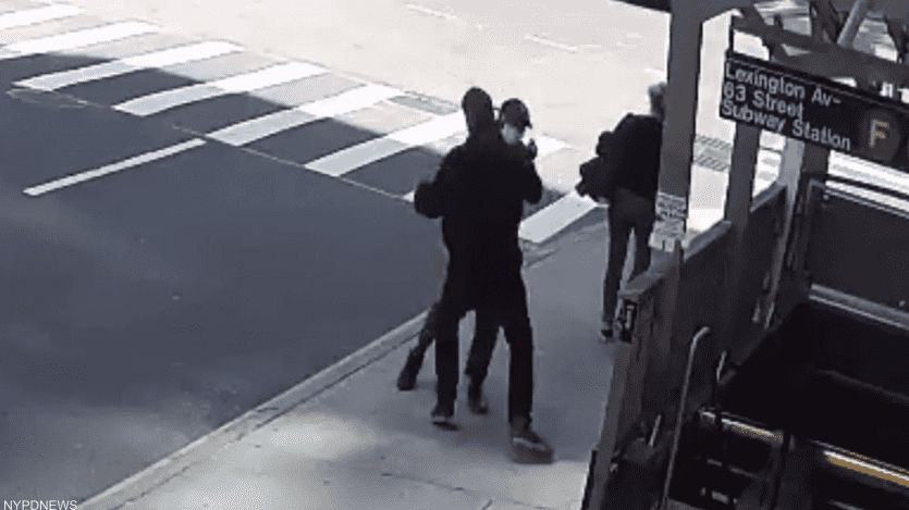 ويظهر مقطع فيديو نشرته إدارة شرطة مدينة نيويورك، رجلا يتعرض لهجوم عشوائي من قبل مهاجم مقنع بسكين كبير، أثناء سيره في الشارع في مانهاتن، الخميس.
